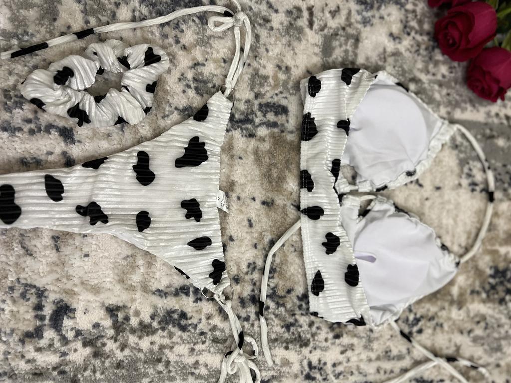 Купальник от любимого бренда с принтом „коровка“ ❤️❤️❤️ Впервые здесь такой увидела решила заказать В комплекте еще резинка для волос Очень круто он выглядит Размер взяла S Сел как надо Материал приятный бархатистый В рубчик На лифе есть вкладыши Я очень довольна этим купальником 🥰🥰🥰 🚩Мои параметры 🚩Рост 164см 🚩Вес 48,5 🚩Ог 86 🚩От 60 🚩Об 90 🟥 Спасибо большое магазину ❤️ И Джуму за весьма скорую доставку ❤️ Спасибо за подписку,лайки и комментарии ❤️ 🎁Удачных всем покупок и отличного настроения