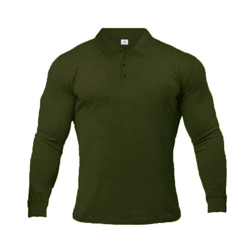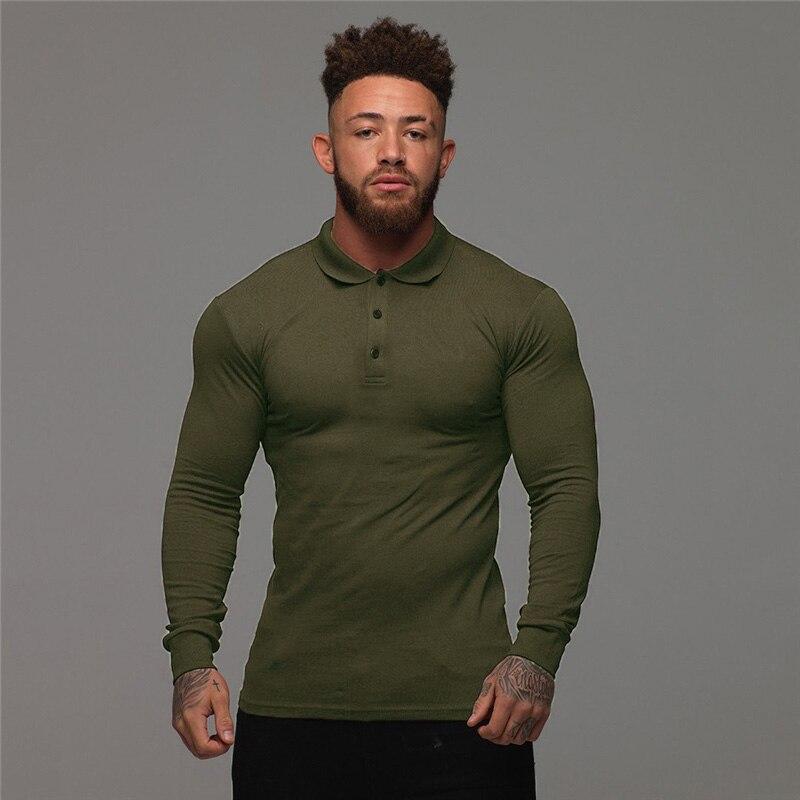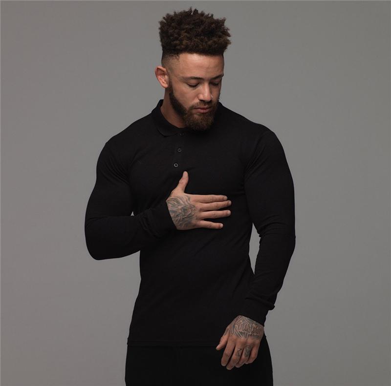 Muscleguys Осенняя повседневная мужская однотонная рубашка-поло с длинным рукавом Slim Fit для фитнеса