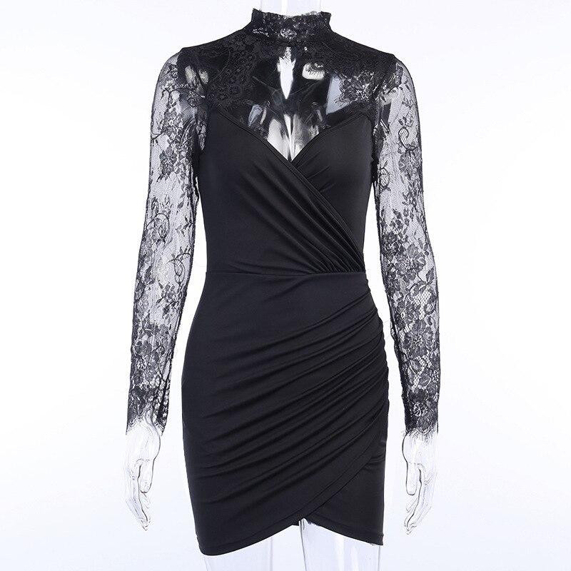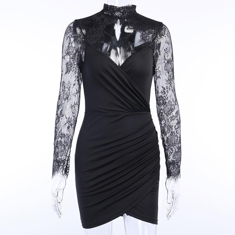Сетчатое кружевное облегающее мини-платье с длинным рукавом, женское сексуальное черное Бандажное платье с открытой спиной и открытыми плечами для отдыха, пляжные платья 2022, лето-осень