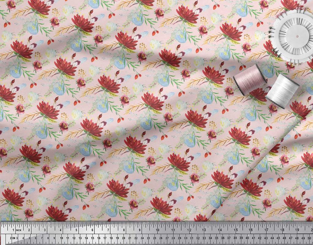 Soimoi Розовая японская креповая атласная ткань Листья и лотос Цветочный принт Ткань на метр 42 дюйма
