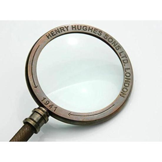 Увеличительное стекло в старинном стиле Лупа из цельной латуни Henry Hughes London Ltd.1942