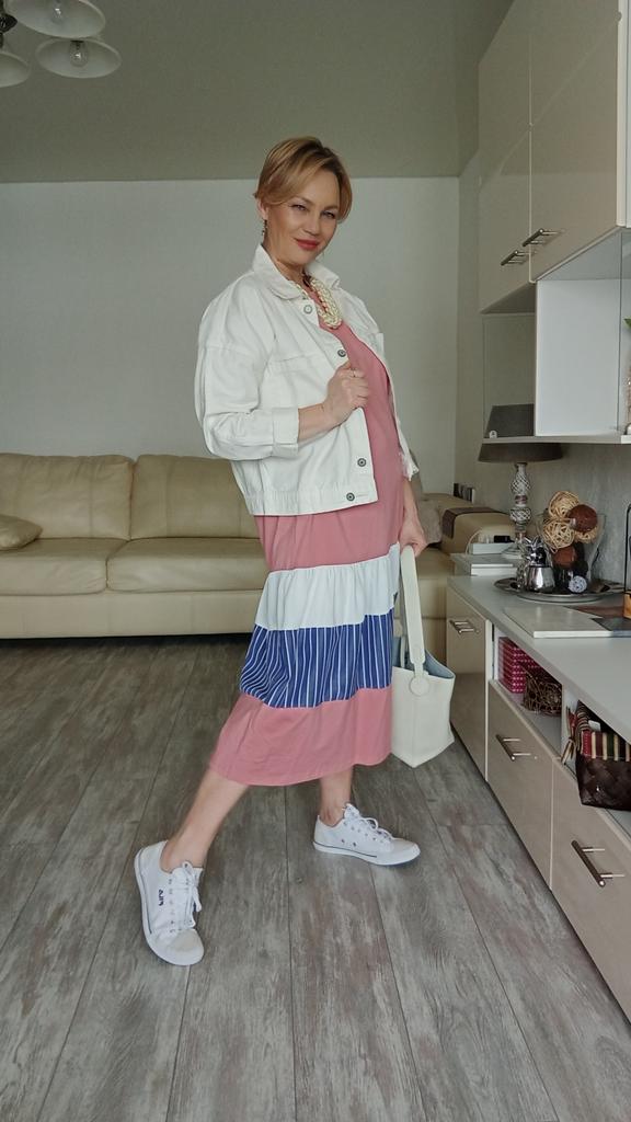 Платье с оборками в спортивном стиле Больше обзоров, промокоды, подарки и закрытые распродажи в моем телеграм канале. Жми лупу 🧐🔎, вводи @Наталья_Великая . Меня можно найти также через браузер. Если не можешь найти, пиши ВК, ссылка в шапке профиля. Два цвета на выбор, есть ещё черный. Размеры L-3XL. На мой рост 167, параметры 98-82-100. На мне размер 2XL. Платье село свободно Прямой силуэт Внизу две оборки Ткань хлопковый трикотаж, хорошо тянется. Воланы из разной ткани, синяя более плотная, чем белая. Обе оборки из синтетической ткани. Замеры Плечи 55 ОГ 120 Длина рукава 19 Ширина рукава 40 Длина 118. Пошив фабричный. Яркое, удобное, нарядное платье.