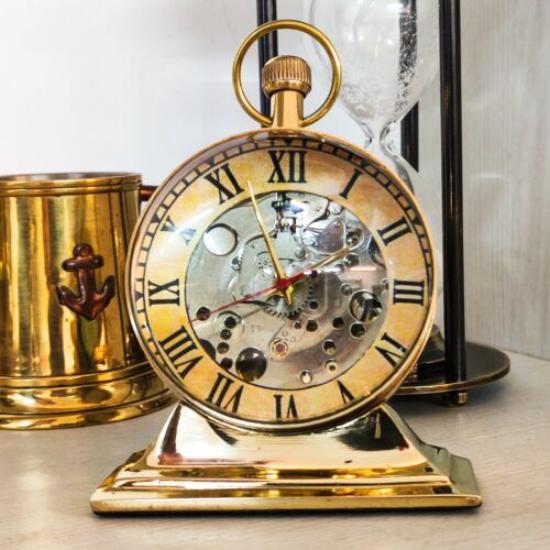 Латунные трофейные настольные часы, механические, винтажные, в старом стиле, настольные, декоративные, подарок