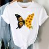 Футболка с милым цветком, модная футболка, одежда 90-х годов, милая трендовая повседневная женская футболка с коротким рукавом и принтом, женская женская футболка с графикой