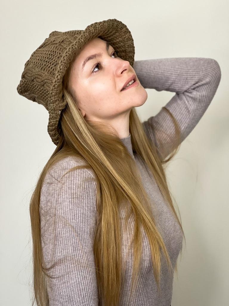 Вязаная панамка 😅 Раньше я очень любила носить шляпы, и вот эта панамка меня тоже зацепила :) Кажется маленькой, надо её немножко потянуть и хорошо потом садится. В полях проволочка, так что поля можно зафиксировать так, как нравится. На ощупь вроде бы акрил, греть особо не будет. У продавца на выбор 6 цветов, я решила, что черную будет проще пристроить в образ, но пока даже не знаю, с чем буду её носить 😂 Как вам такой головной убор?)