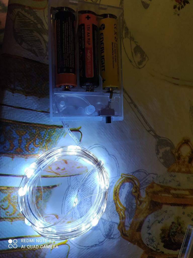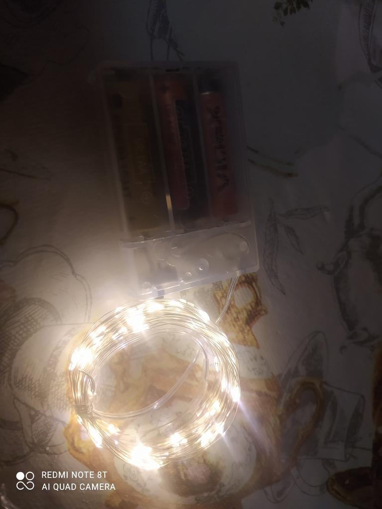Гирлянда ярко светит! Хорошее качество. Соответствует описанию. Используем в детской при отключениях света - ребенку хватает света играться в комнате, иногда еще фонарик включает дополнительно. Из плюсов еще - проволоку не видно на стене, не бросается в глаза.