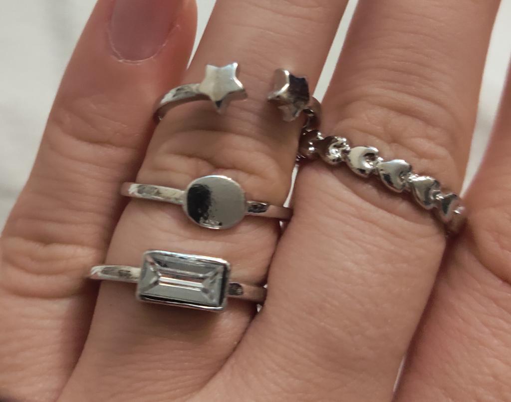 Пришли в отличном состоянии🔥23 штуки. Большинство больших, мне великоваты, несколько маленьких размеров и несколько, у которых можно регулировать размер. Вообщем большинство колец не для тонких пальчиков . На первом фото кольца большого размера, на втором кольца маленького размера, только они мне подошли, на третьем фото кольца которые можно регулировать, уменьшать или делать размер больше.🚩Девочки , кто спрашивает все ли эти кольца всего за тысячу, да , это набор 23 штуки колец , всего за 1000тг💕