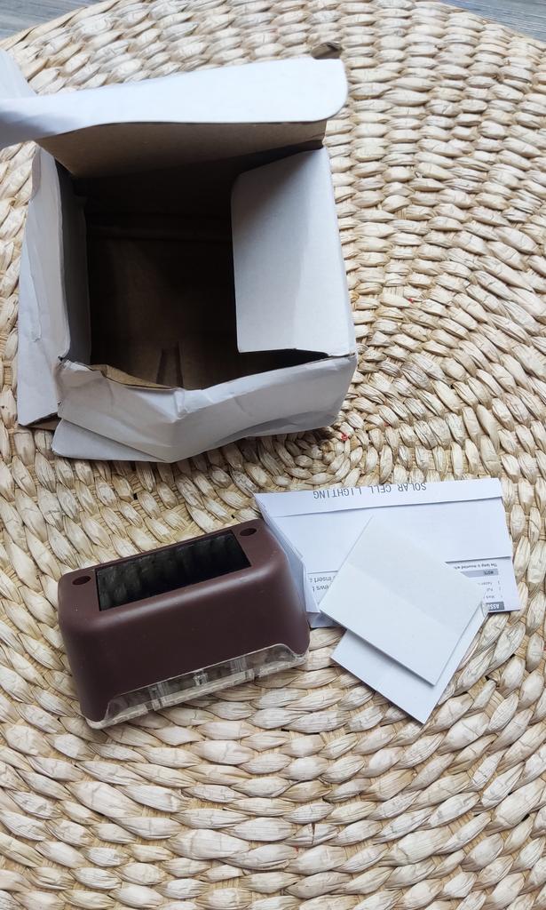 Подсветка для ступенек или для забора на солнечной батарее - удобное решение без лишних проводов. Действительно хорошо работает: при световом дне аккумулирует солнечную энергию, как только темнеет - начинает светить лампочка. Света не много, но для того, чтобы подсветить ступеньку, вполне хватит. Прикручивается к поверхности двумя саморезами, есть иллюстрированная инструкция. Приходит упакованным в коробку, правда моя оказалась сильно помятой 😏 слава Богу, сам светильник не пострадал