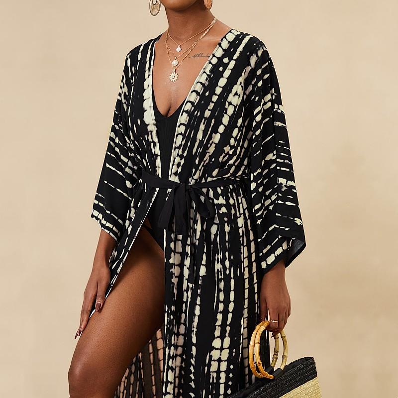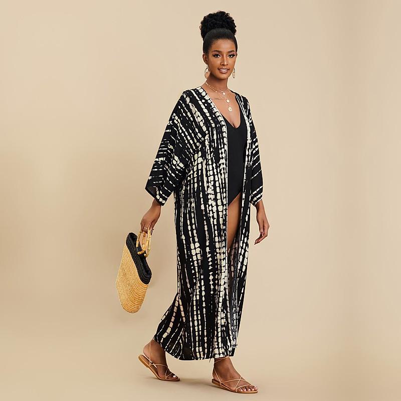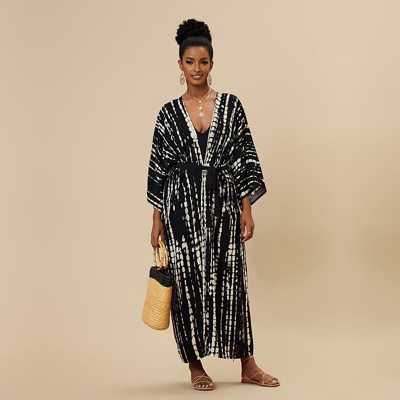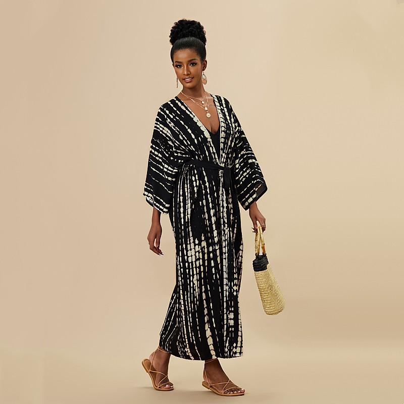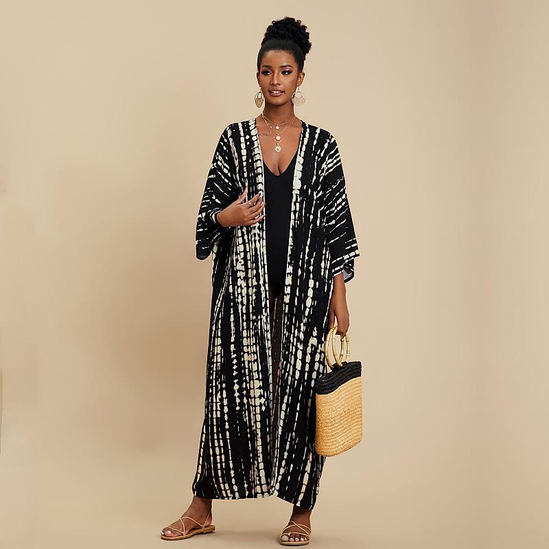 EDOLYNSA Богемный галстук-краситель в полоску, накидки на бикини, длинная туника, сексуальное платье-кимоно, женское платье больших размеров, пляжная одежда, купальный костюм, накидка Q1314
