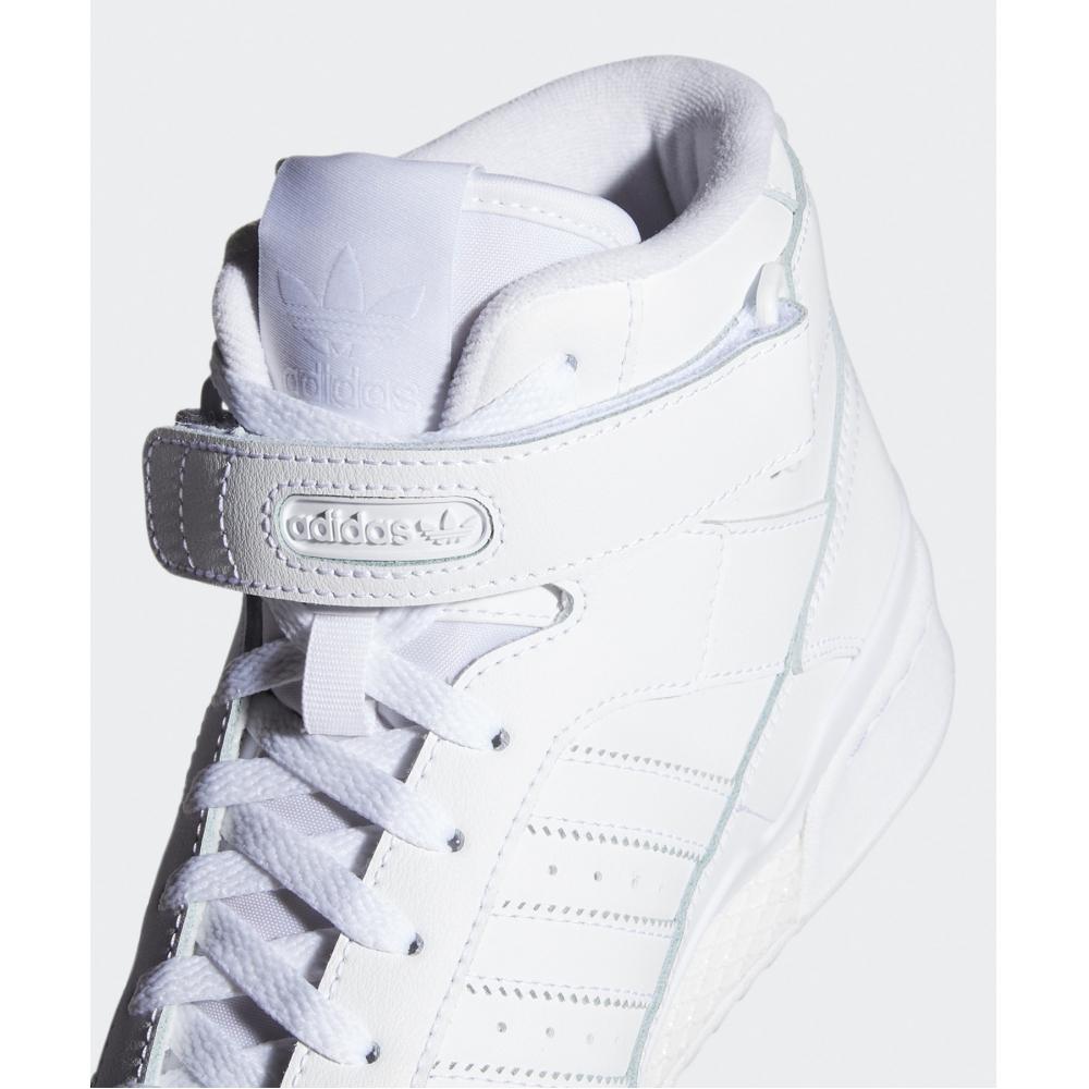 Форум ADIDAS Mid (4975 финансовый год) кроссовки белого цвета вдохновлены оригинальной серией Adidas Forum, дебютировавшей в 1984 году. Верх выполнен из мягкой и прочной кожи, подошва — из резины, а фирменные логотипы в виде трех полосок и трилистника добавляют изюминку дизайну.. Средний крой охватывает щиколотку, обеспечивая надежную посадку.