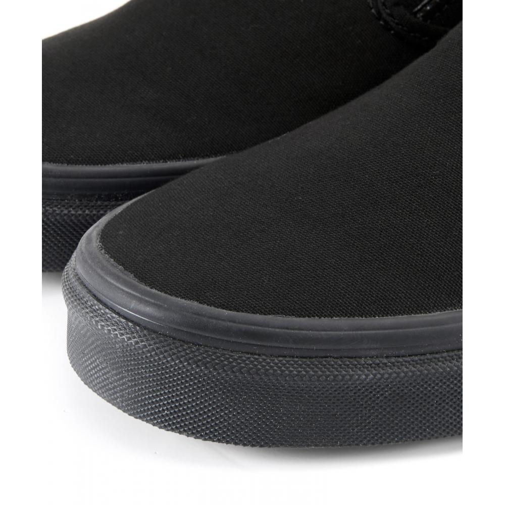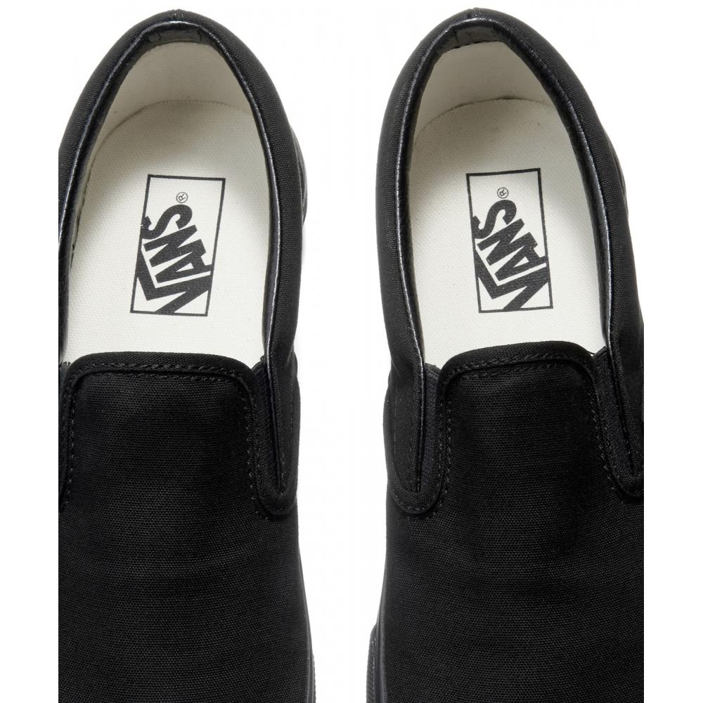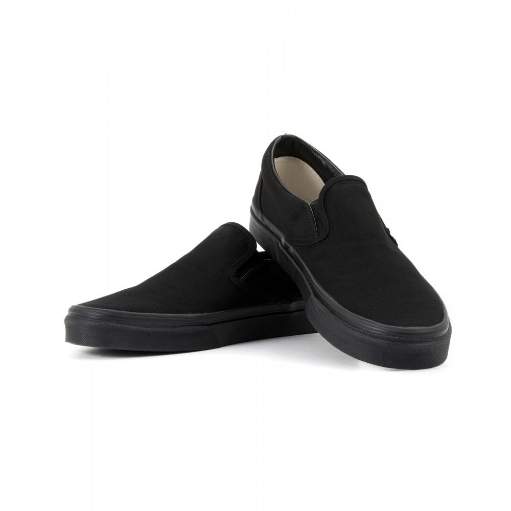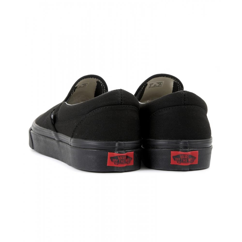 Vans Classic Slip-On Black Black (VN000EYEBKA1) выполнен в классическом черном цвете и имеет свободный крой, что делает его универсальным дополнением к различным повседневным образам. Сбоку имеется тканый логотип Vans, а на щиколотке — эластичная резинка для удобства надевания и снятия без шнурков.. Изготовленные из прочного парусинового материала, они также могут похвастаться резиновой подошвой, обеспечивающей противоскольжение.