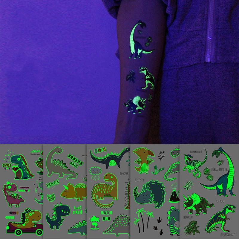 Новые светящиеся наклейки-тату динозавра, детские забавные светящиеся наклейки с героями мультфильмов, наклейки-татуировки