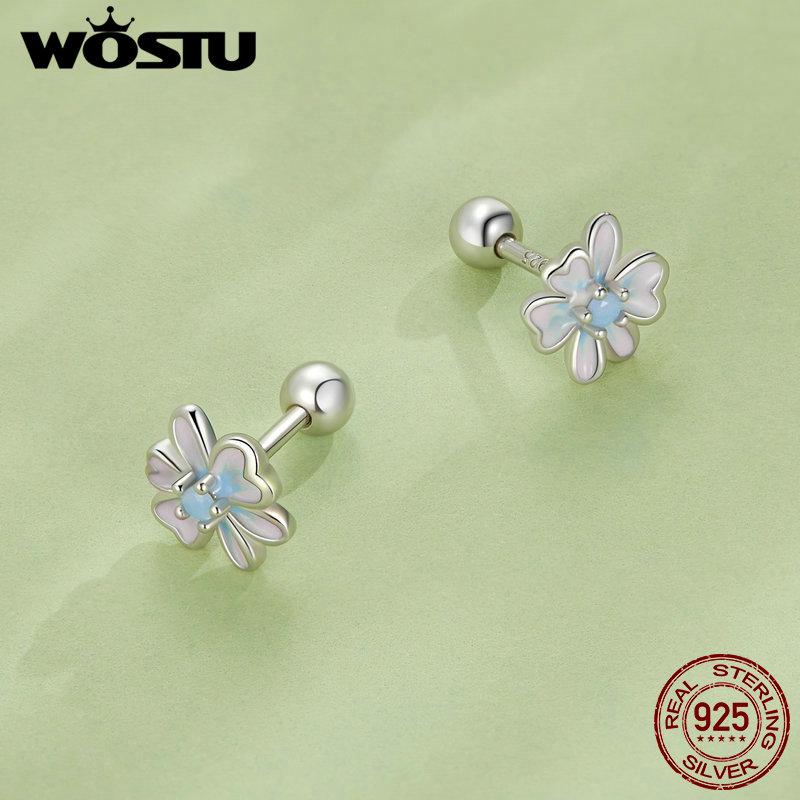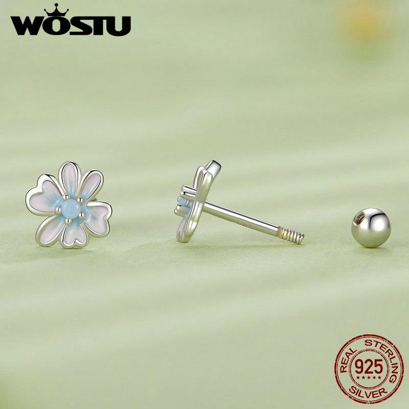 WOSTU Настоящее серебро 925 пробы, синие и розовые серьги-гвоздики с постепенной эмалью и цветком для девочек, ювелирные изделия, подарок