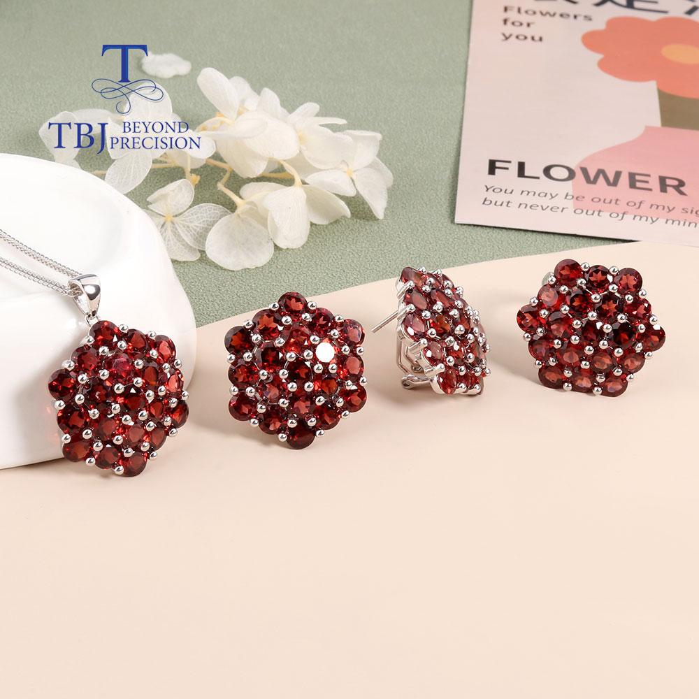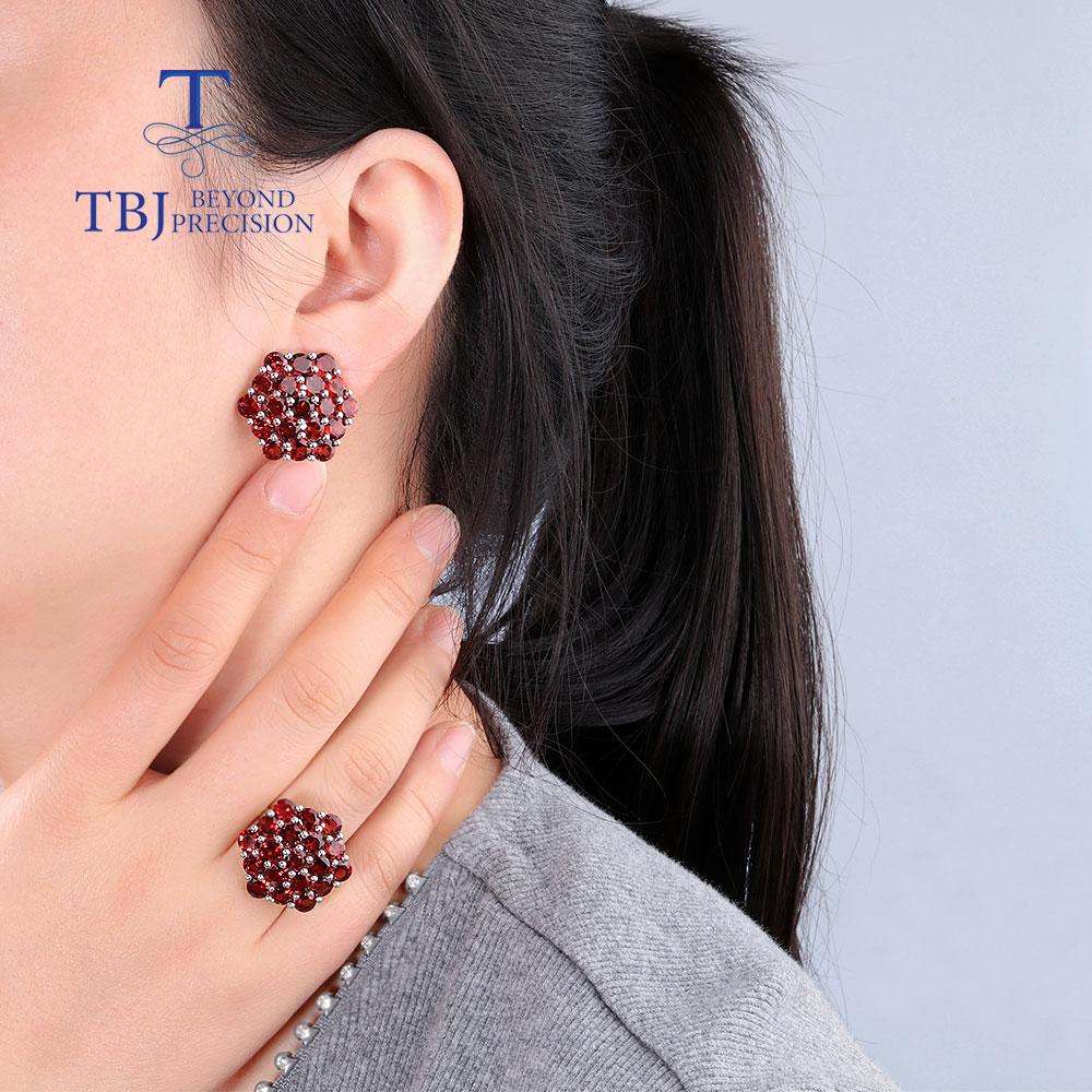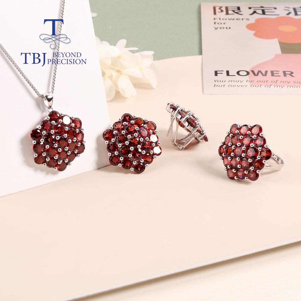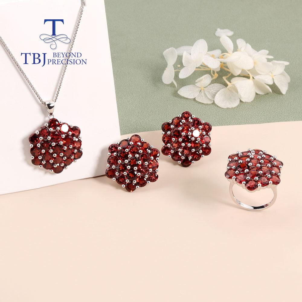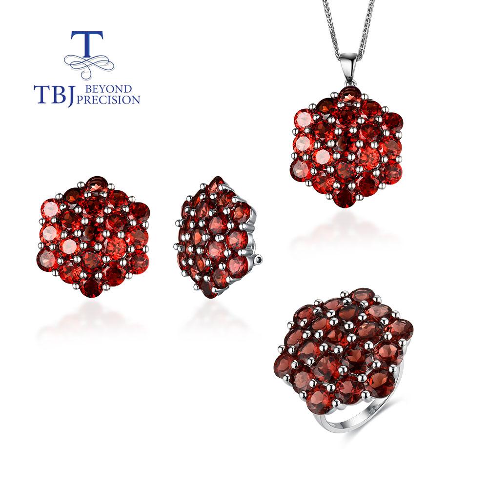 2023 Новый роскошный комплект ювелирных изделий из натурального красного граната, серьги-подвески, кольцо из стерлингового серебра 925 пробы, женские изысканные ювелирные изделия, подарок для мамы на вечеринке