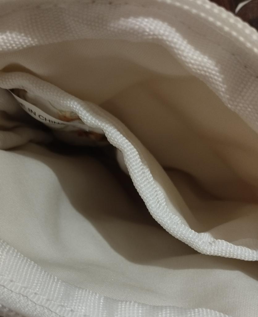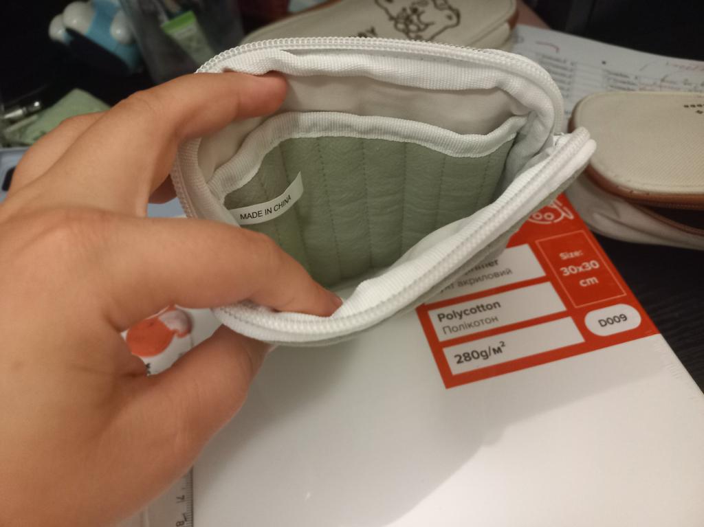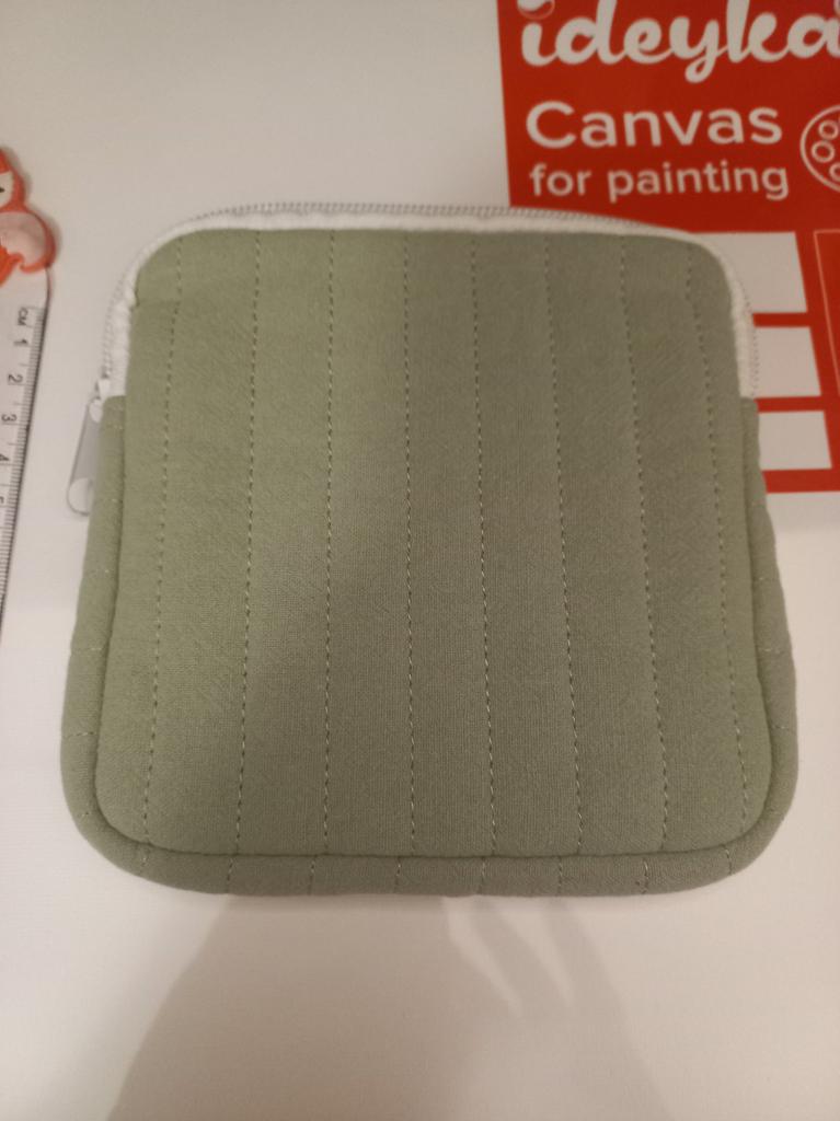 Очень приятное качество хлопковое довольно-таки большая я думаю будет меньше это можно использовать как косметичка для косметики так как маленькая сумочка так как кошелёк и так как сумочка для прокладок