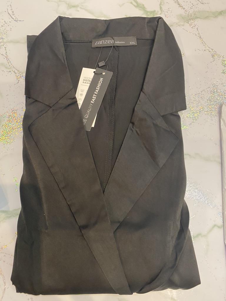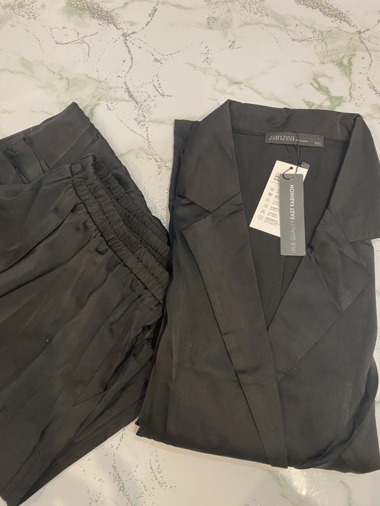 Летний костюм от Zanzea в потрясающем цвете❤️ Я в восторге от него! Ткань легкая, струящаяся, очень приятная на ощупь, с переливом, похожа на шёлк. Но это синтетика полиэстер. Мнется сильно, но и гладиться легко. Брюки с карманами, на поясе широкая резинка. Тянется прилично. Пиджачок без подклада. Пошив фабричный, этикетка и фирменный зип-пакет присутствует. На свой рост 178 взяла 3XL. Можно было и меньшего размера брать, поскольку в талии мне великовато, но мне хотелось длину брюк полноценную. В принципе и так смотрится шикарно. Размерам продавца практически соответствует. Рукава у меня иначе получились, в остальном всё верно, если есть разница то в пределах допустимой погрешности. Мои замеры: длина брюк 108 ОТ - 84 ОБ- 128 ОГ- 123 Плечи (я измеряла от плечевого шва и до плечевого шва) - 59 Рукав (от плечевого шва до конца рукава) - 47 Длина пиджака - 75 Доставка за 3 недели. Товаром очень довольна и рекомендую 🥰💯