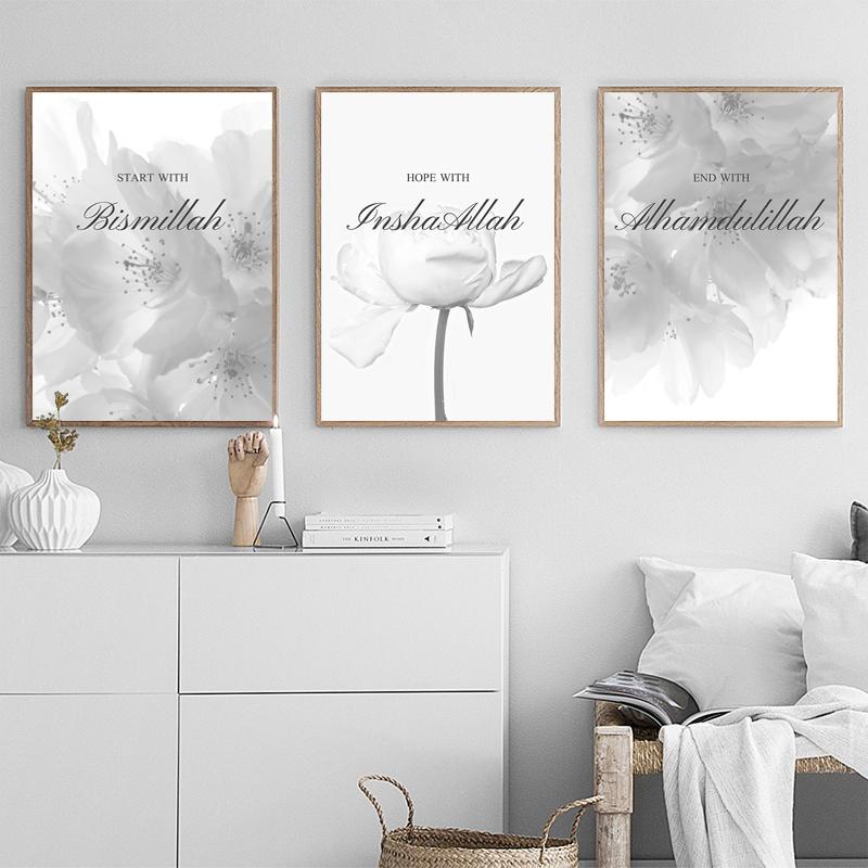 Исламская Холст Фреска Коран Французский Бисмилла Стены Книги по искусству Подарки Печать Плакатов Афиша Исламик Холст Картина Гостиная Домашний Декор
