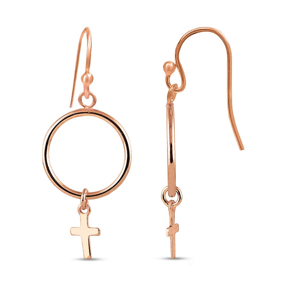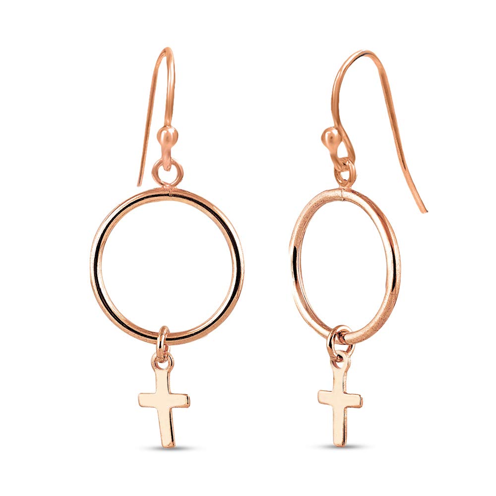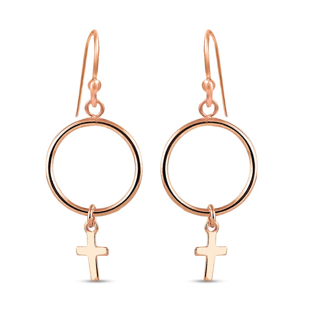 Настоящие ювелирные изделия из стерлингового серебра 925 пробы, круг из розового золота с подвеской в виде креста, висячие серьги для девочек-подростков 38 мм
