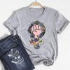 Женская повседневная футболка с коротким рукавом и цветочным принтом из хлопковой смеси