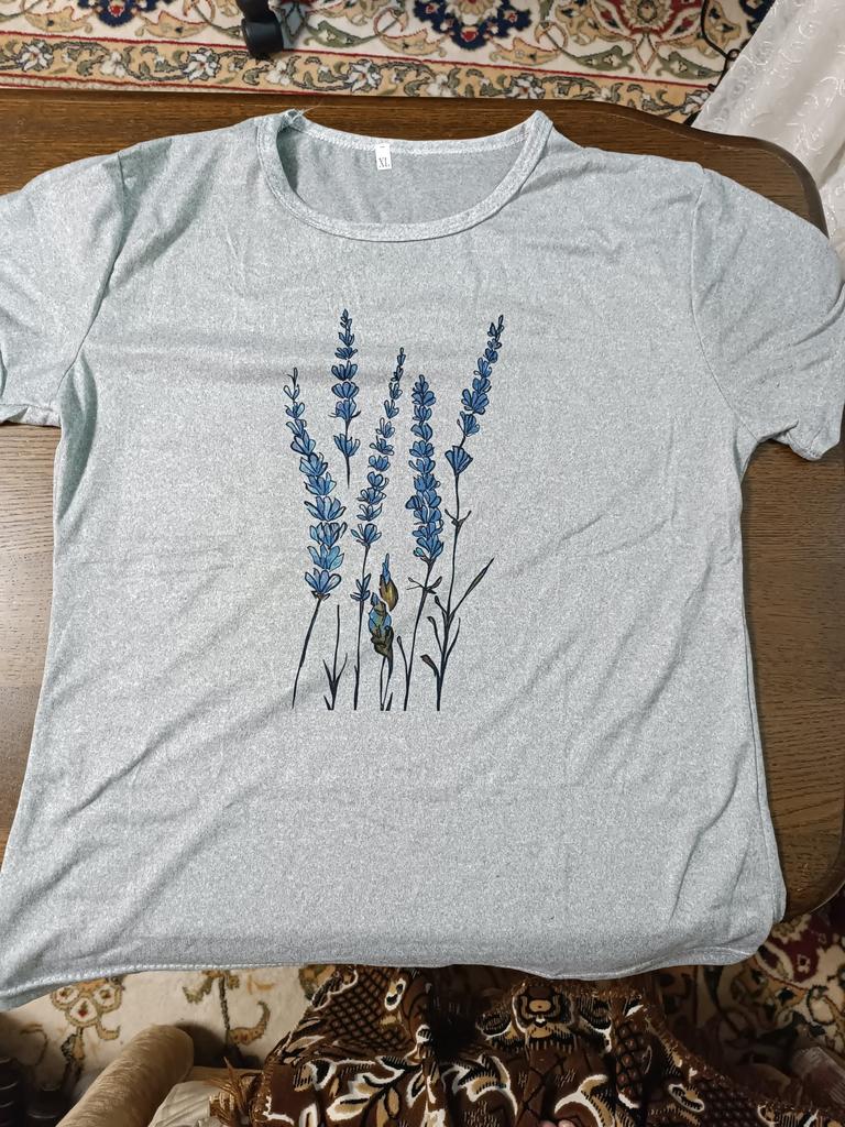 Такую и хотела футболку,брали на 52р/свободно сидит,что и нравится)Ткань приятная к телу,яркие цветы.Очень понравилась,Джуму и продавцу большое спасибо😍