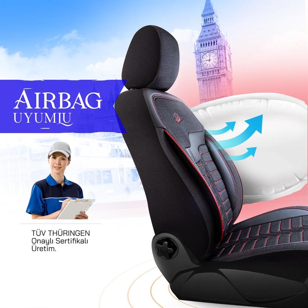 ЛОНДОНСКАЯ СЕРИЯ, БРИТАНСКАЯ СПЕЦИАЛЬНАЯ ЖАККАРДОВАЯ ТКАНЬ, Чехол АВТОМОБИЛЬНОГО СИДЕНЬЯ, красный, черный, дышащая ткань