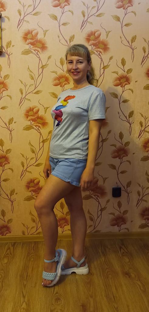 Отличная футболка на лето 🌼🌺🌼 Прямая, традиционного кроя, длина средняя,58см, рукава короткие.☝️ Материал полиэстер, мягкий, лёгкий, эластичный, приятный к телу.👍 Ткань не просвечивает, не электризуется, тянется хорошо ☝️ Цвет серый,интересный яркий принт.👌 Выглядит как на фото продавца 🙂👍 точь в точь. На параметры ОГ 94, ОТ 75, ОБ 98, рост 1, 65 я взяла XL ☝️ Мне футболка подошла, невпритык, свободна. По моему замеру ОГ на XL 92-104 см☝️ По качеству претензий нет: швы ровные, аккуратные, нитки не торчат, дефектов не имеет.👍💯 Рекомендую 🤗 к покупке: красивая, комфортная и недорогая.