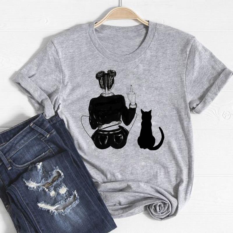 Футболка, модная футболка с котом, домашним животным, милый стиль, милая одежда 90-х годов, повседневная женская футболка с коротким рукавом и принтом, женская женская футболка с графикой
