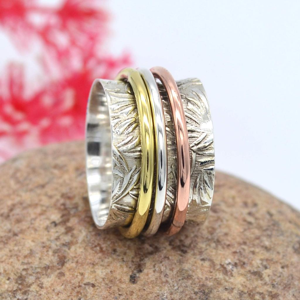Кольцо-спиннер, трехцветное кольцо-спиннер из стерлингового серебра 925 пробы, кольцо для большого пальца, серебряное кольцо — купить товар онлайн с бесплатной доставкой по всему миру!