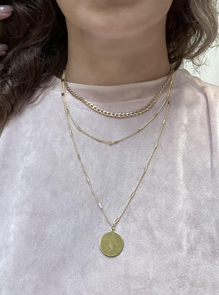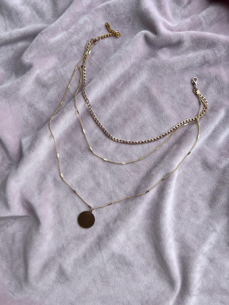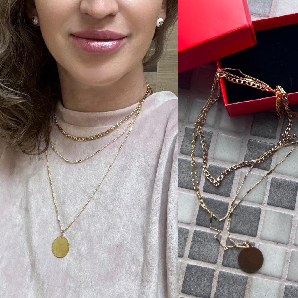 Классное украшение из Турции. Данное изделие мне очень понравилось. Выполнено ожерелье из трех видов цепочек, соединенных в одну. Так же есть еще кулон- круглый, гладкий, без гравировки. Размер регулируется по длине, есть зарас. Застежка-карабин. Металл - желтое золото. Как раз в тренде! Украшение пришло в красной коробочке, упакованной в пупырку. Очень стильное🔥. Просто огонь! Советую? Да!