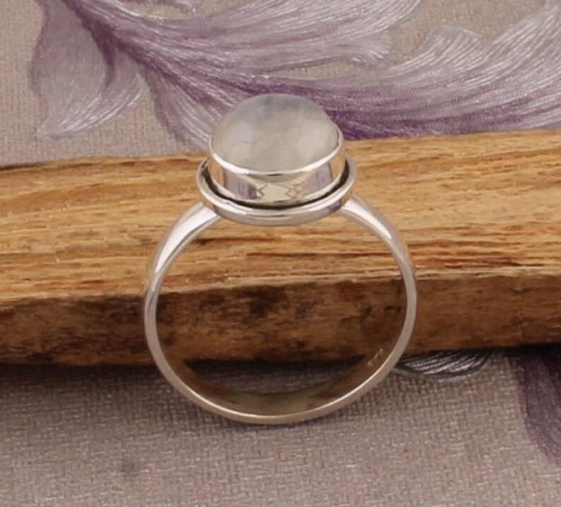 Кольцо из лунного камня из стерлингового серебра 925 пробы, кольцо из цельного камня, эффектное кольцо с драгоценным камнем, свадебное кольцо, подарок на Рождество, прибл. 4,5 г