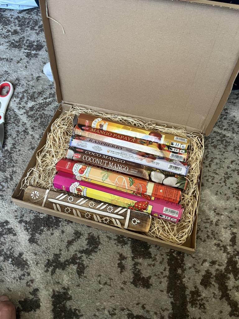 Заказ получил но качество палочек не ахти , так же запах палочки с черри пахнет г**** Ожидал намного большего от них + сама платформа для горения с кривой дыркой некачественный самопал