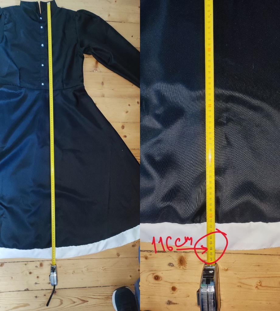 Качество пошива и ткани - отвратное, но за такую цену это было ожидаемо. Неожиданным оказалось то, что, заказав размер XL, получил костюм, параметры которого были меньше, чем у S в размерной сетке. Обхват груди - 82, талия - 80, рукав - 55, а длина всего платья - вообще 116, при том, что минимальная длина в описании - 126см! Я очень недоволен, вернули только половину стоимости.