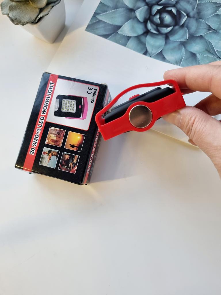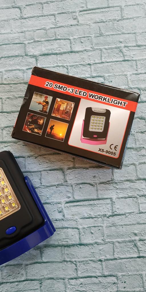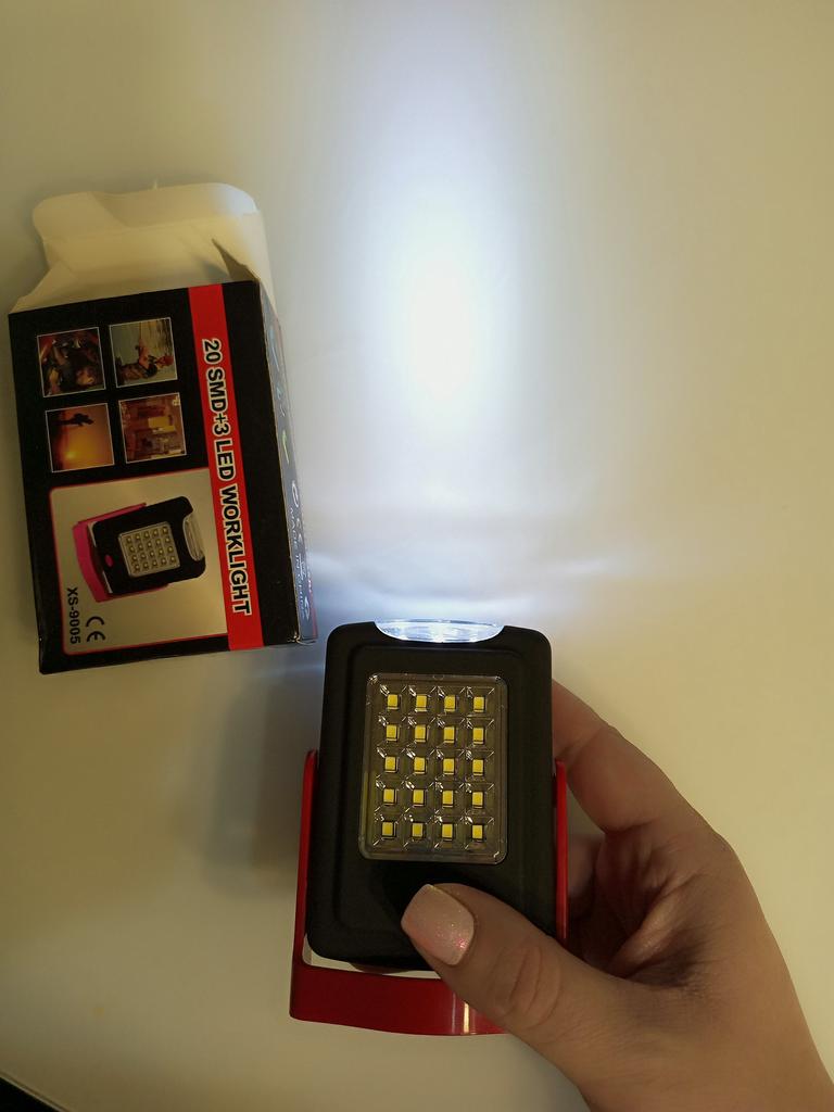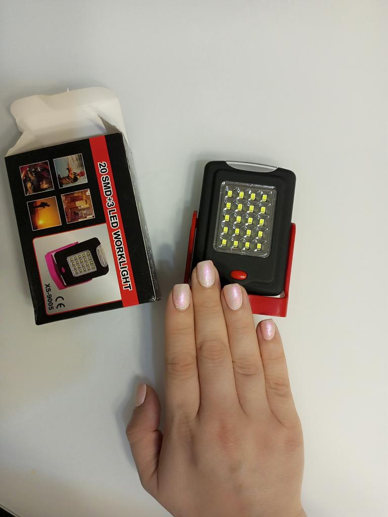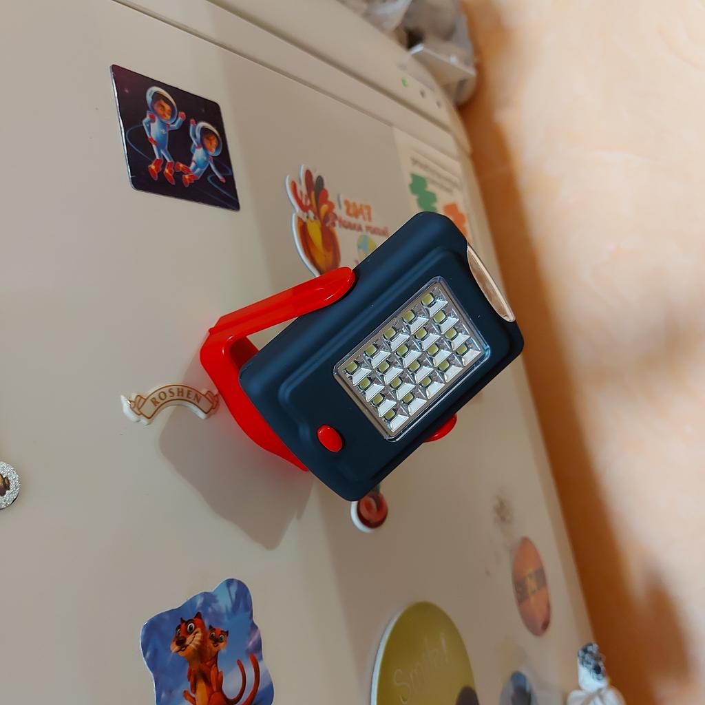 Портативный светодиодный фонарик Прилетел в фирменной коробке Работает от трёх мизинчиковых батареек ( в комплект не входят ) Имеет магнитное крепление и крючок Два режима свечения Доставка месяц с живым треком Заказывала красный ,пришел синий, но звезду снимать не стала