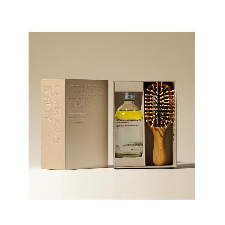 TOUN28 Эфирное масло для волос баобаба + набор мини-деревянных щеток, 2 шт.