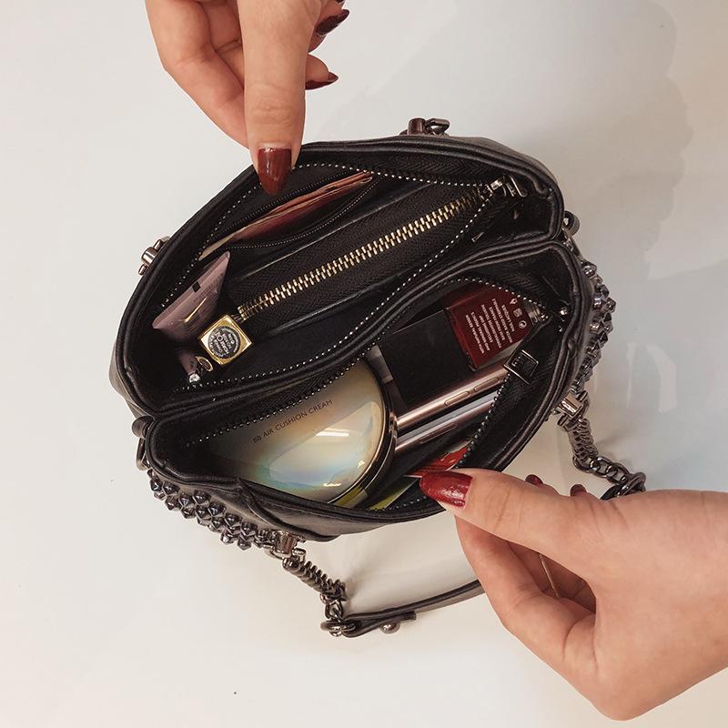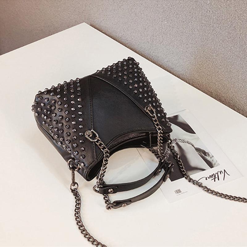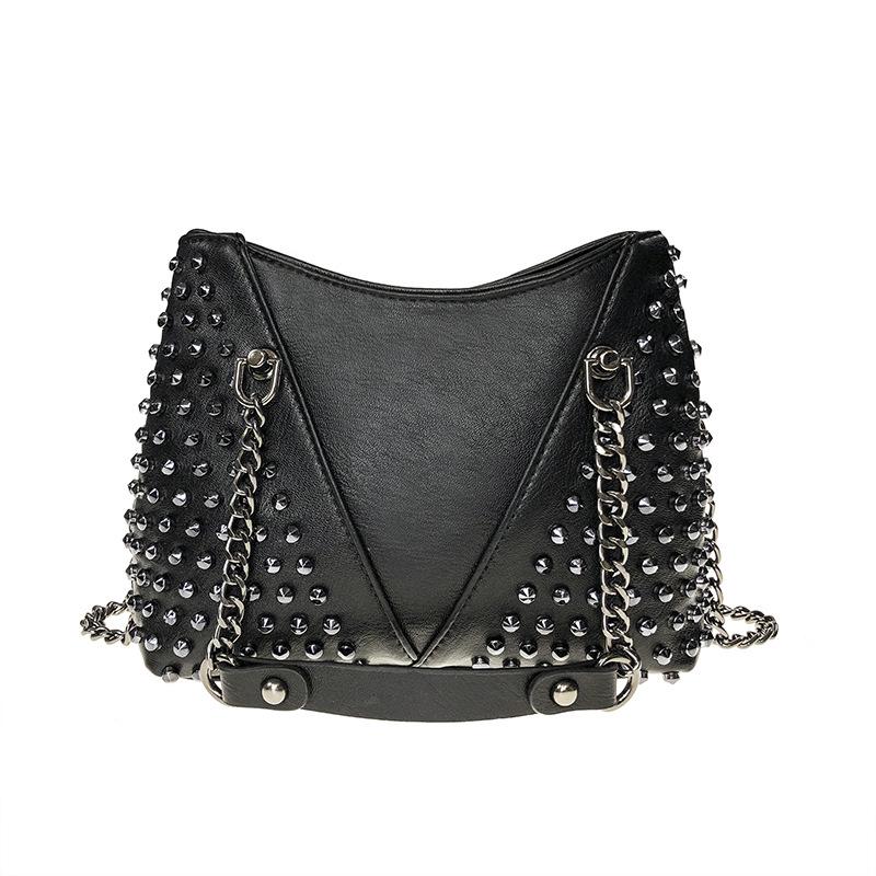 Jierotyx Женская кожаная сумка через плечо с заклепками в стиле панк, сумка через плечо с цепочкой, кошелек для девочек