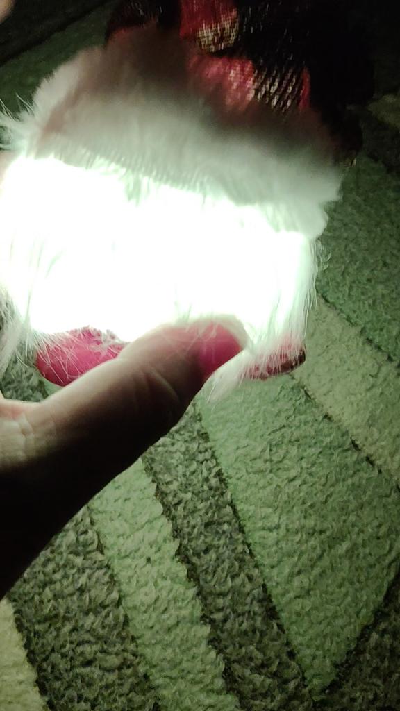 Дошел до Москвы за месяц в сборной посылке из нескольких заказов, был упакован в серый целлофановый пакет. Цена весной составила 177 рублей. Батарейка шла в комплекте. Светится ярко. Сразу после распаковки немного "посыпалась" опушка, но звезд за это не снимаю. Шапочка гнётся в любую сторону. Очень милый олень)))