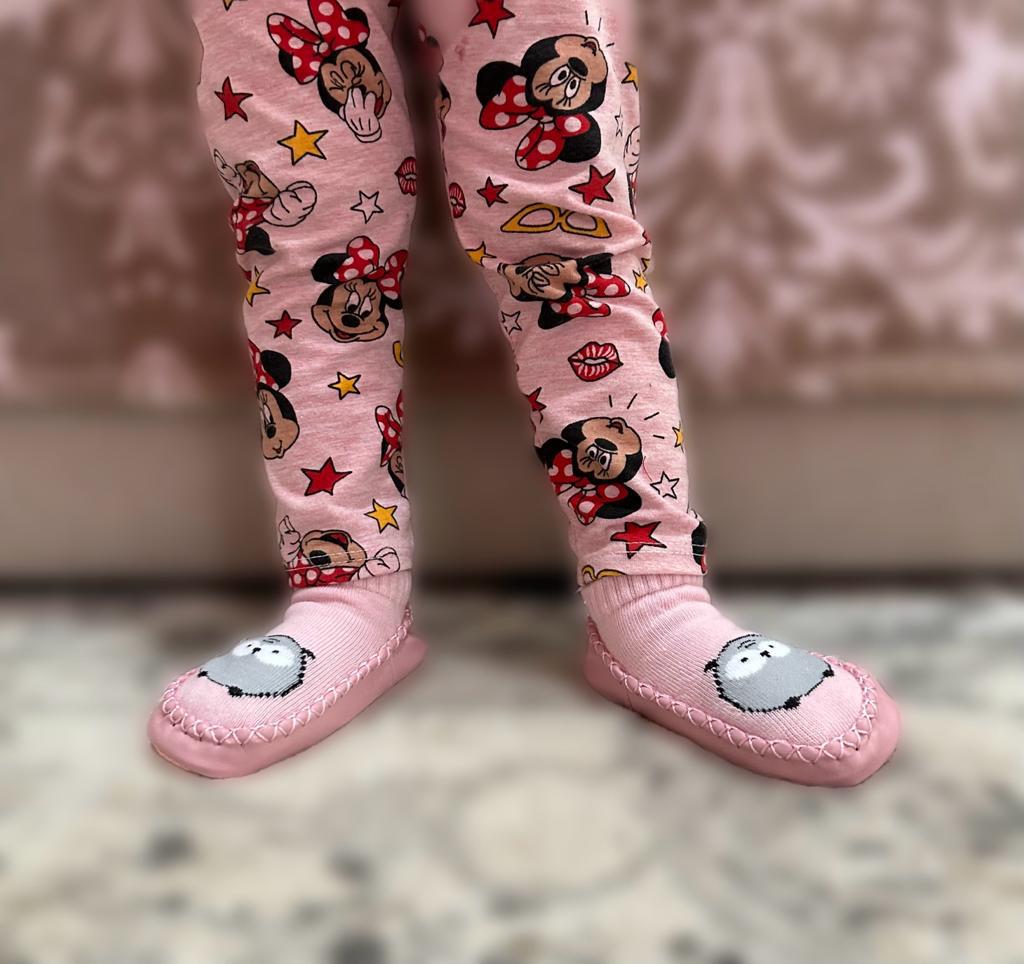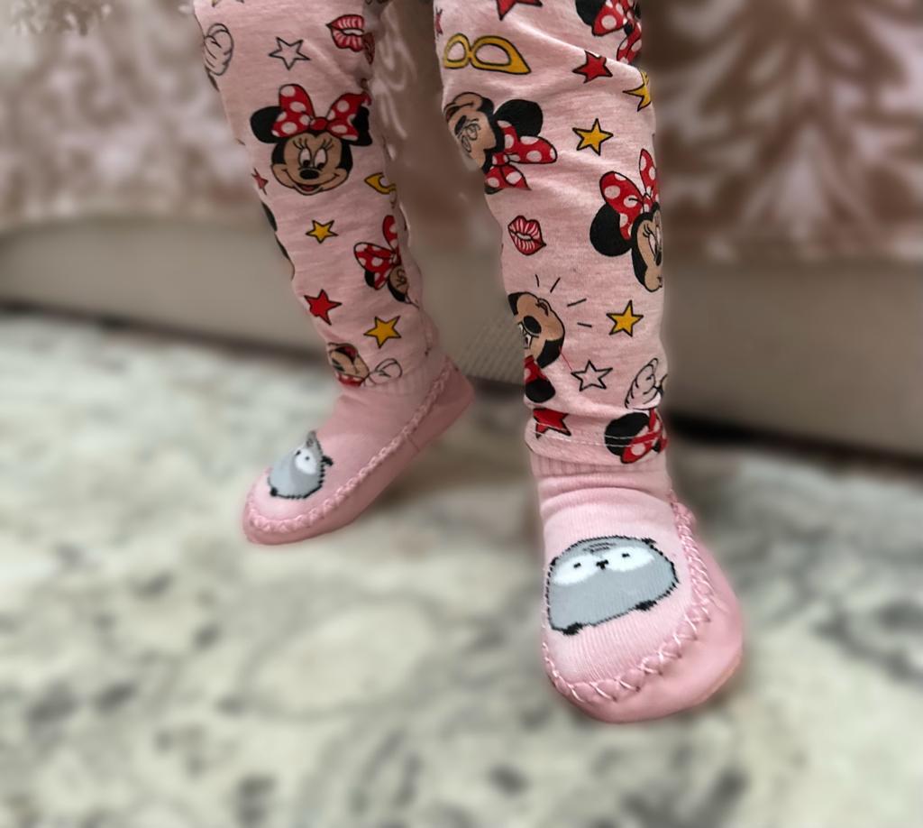 Доставка в срок. Прекрасные носочки. Низ из мягкого кожзама и пупырьки против скольжения. Детям очень нравятся. На размер ноги 14,5 см. как раз. Товар и продавца рекомендую.
