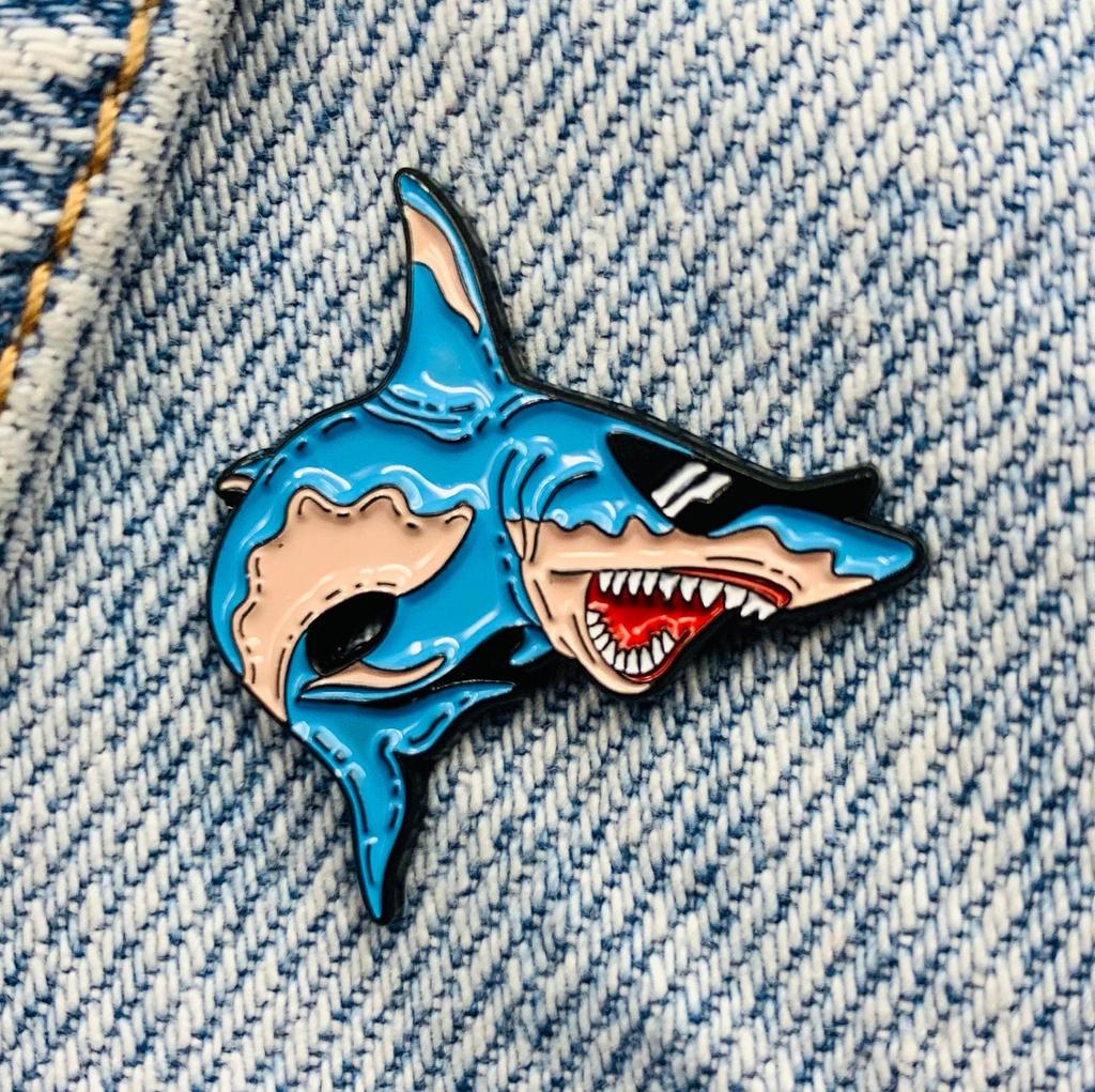 Новая эмалированная булавка в виде акулы с солнцезащитными очками, морское животное, металлическая булавка, подарок на день рождения, 1 шт.