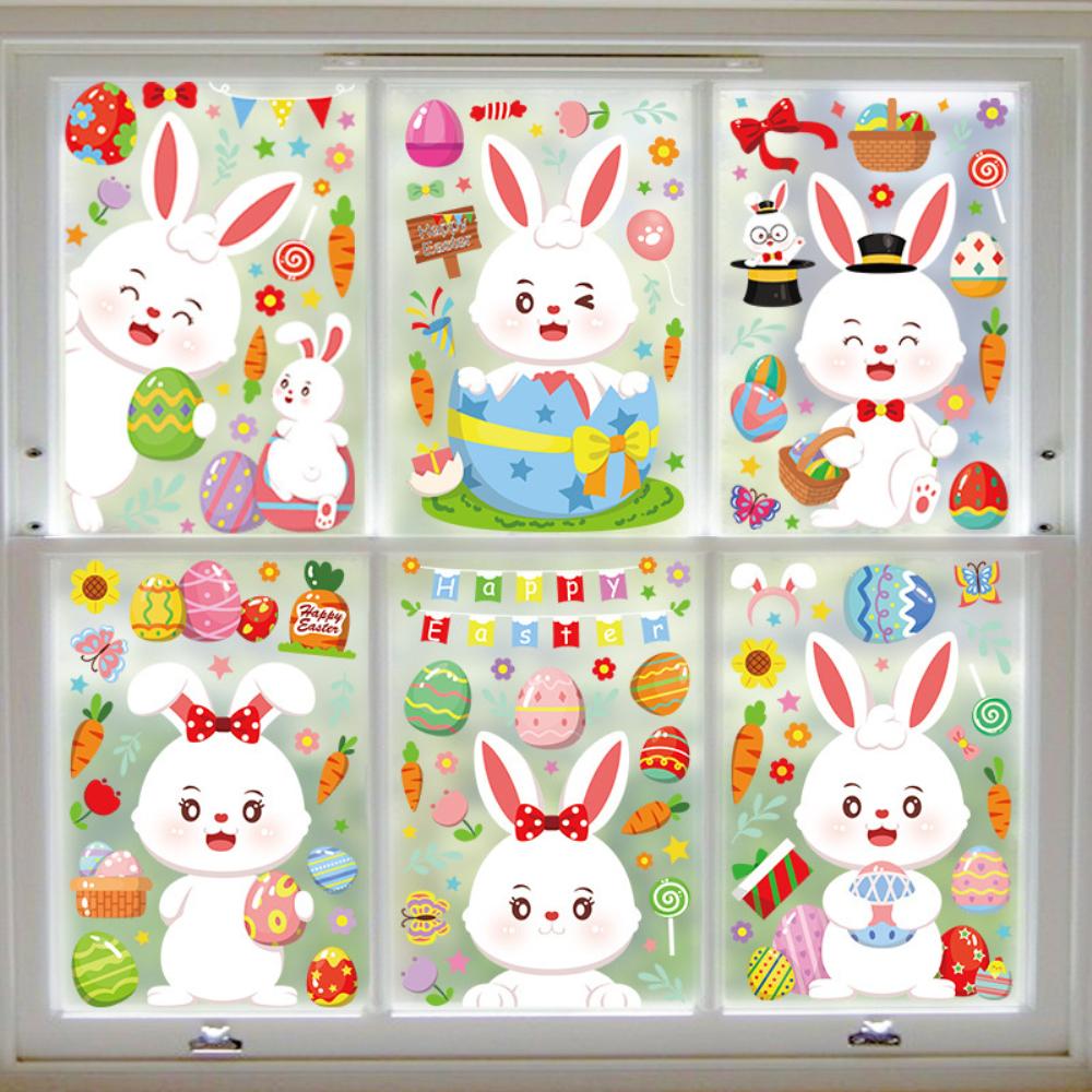 Счастливой Пасхи Наклейки на окна Кролик Пасхальные яйца Морковка Наклейка на стекло Пасхальная вечеринка Наклейка на стену Пасхальные украшения для дома