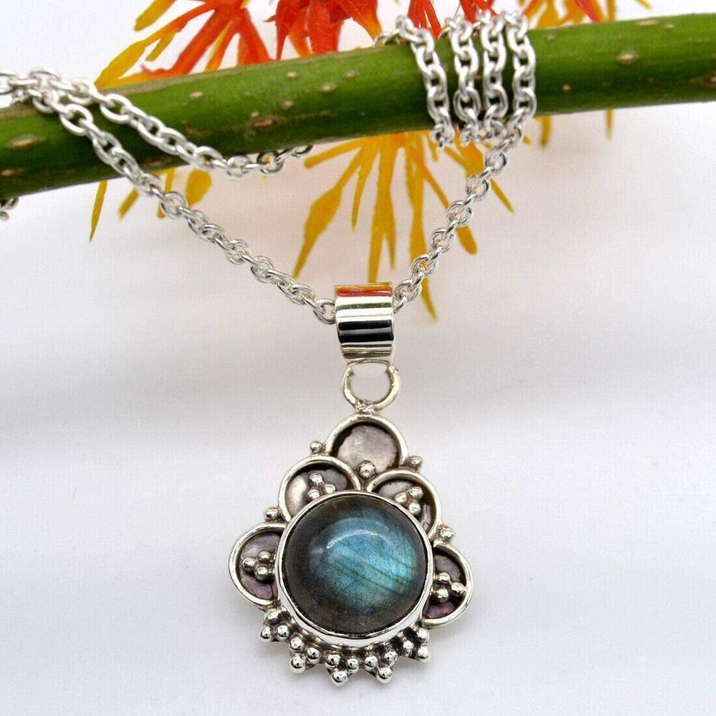 Круглый кабошон Натуральный лабрадорит (8,80 карата) Ожерелье с подвеской Твердая подвеска из стерлингового серебра 925 пробы с цепочкой — купить товар онлайн с бесплатной доставкой по всему миру!