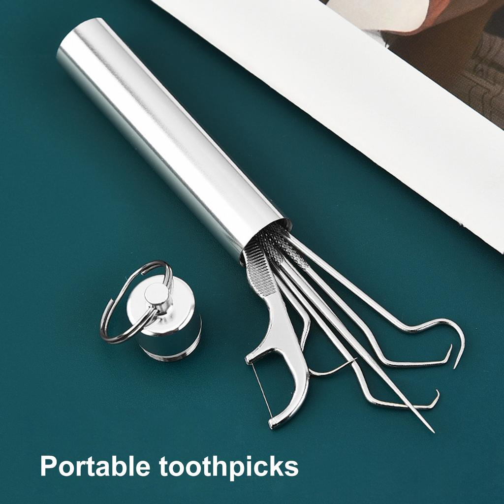 Набор зубочисток из нержавеющей стали 304, зубная нить, металлическая зубная нить, портативная трубка для хранения в полости рта