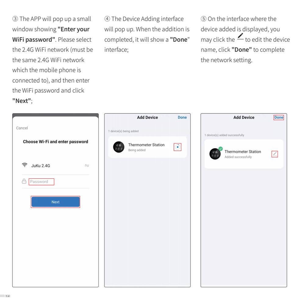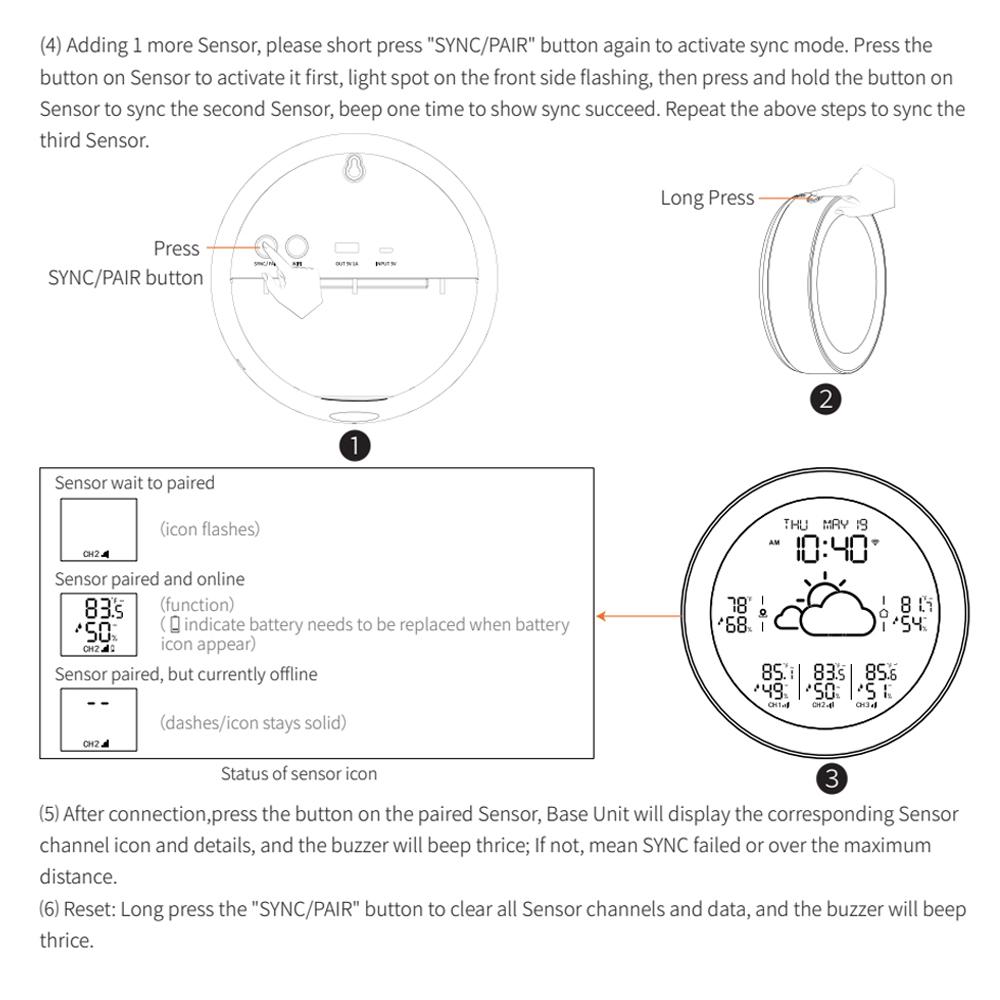 Поддержка до 3 подустройств, поддержка 3 субмарин измеряет температуру и влажность в разных местах одновременно, температуру и влажность субустройства можно просматривать только на мобильном телефоне.