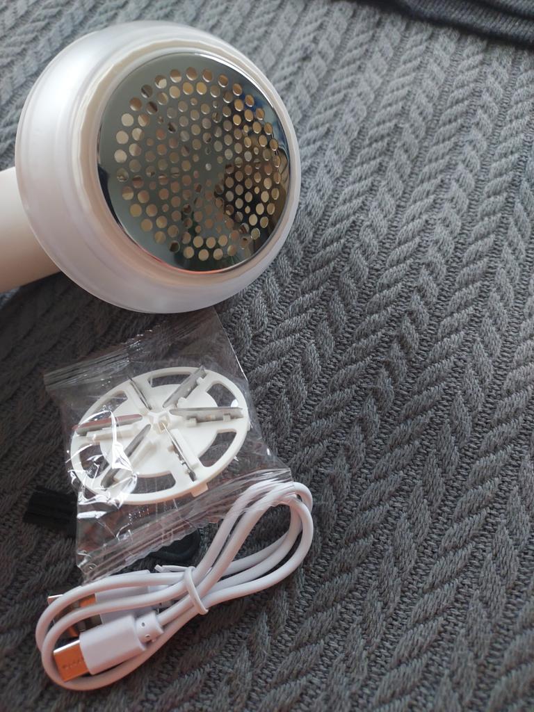 Ждала заказ чуть больше месяца. В комплекте с машинкой пришёл провод для зарядки и запасной нож. Кнопка немного под уклоном закреплена но на работу устройства это никак не влияет. Убирает катышки хорошо и быстро. Минус этого устройства в том, что во время работы от него идёт неприятный запах (запах перегоревшей проводки), когда машинку выключить то запаха нету. А так устройством очень довольна 😌. Спасибо продавцу и Joom. Машинку по удалению катышек рекомендую.