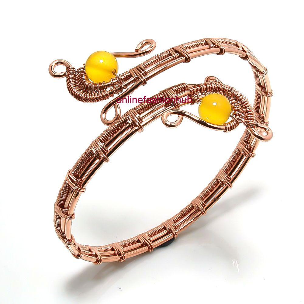 Желтый агат Драгоценный камень Медная проволока ручной работы Браслет-манжета/браслет HCWB-B72 — купить товар онлайн с бесплатной доставкой по всему миру!