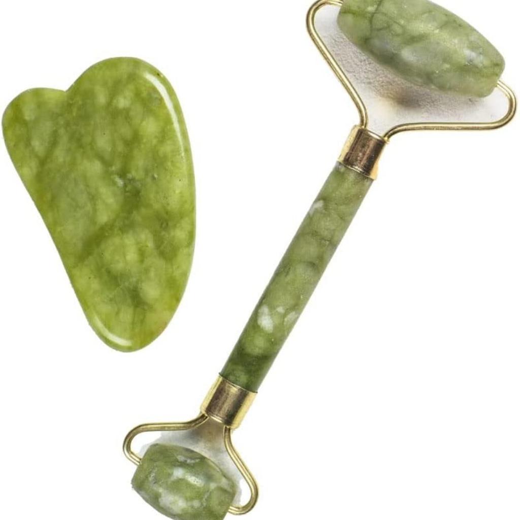 Комбинированный массажер, натуральный нефритовый камень, улучшает микроциркуляцию лица, уменьшает отечность и морщины, повышает эластичность кожи