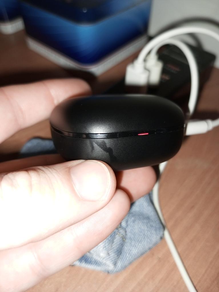 Кейс наушников бракованный. Заряд не держит вообще. Наушники по сути могу зарядить полностью только когда кейс подключен к сети. Следы на кейсе говорят о том, что скорее всего из повреждённых аккумуляторов вытекла жидкость, которая и оставила подобные отметины. Начал переговоры со службой поддержки чтобы решить данный вопрос.