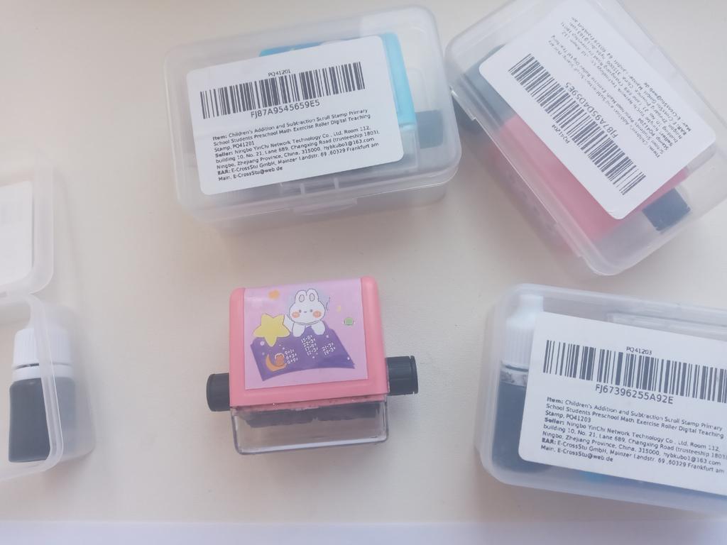 Доставка 45 дней. Заказ объединили. Удобно. Заказали 2 штампика с умножением и делением с цифрами от 1 до 99. По факту пришёл штампик с делением трехзначных цифр. Перепутали штампики. На фото видно, что заказали и что доставили. Упаковка это отдельная тема. Упаковка пакет пупырка. Уважаемый продавец пакуйте штампы и баночки с чернилами отдельно. Чернила из штампа разлились и оба товара были очень запачканы. Штампики понравились. За них 5. Упаковка отвратительная. За нее 1. Поставила среднюю оценку 3. Стоимость товара возместили. Спасибо.