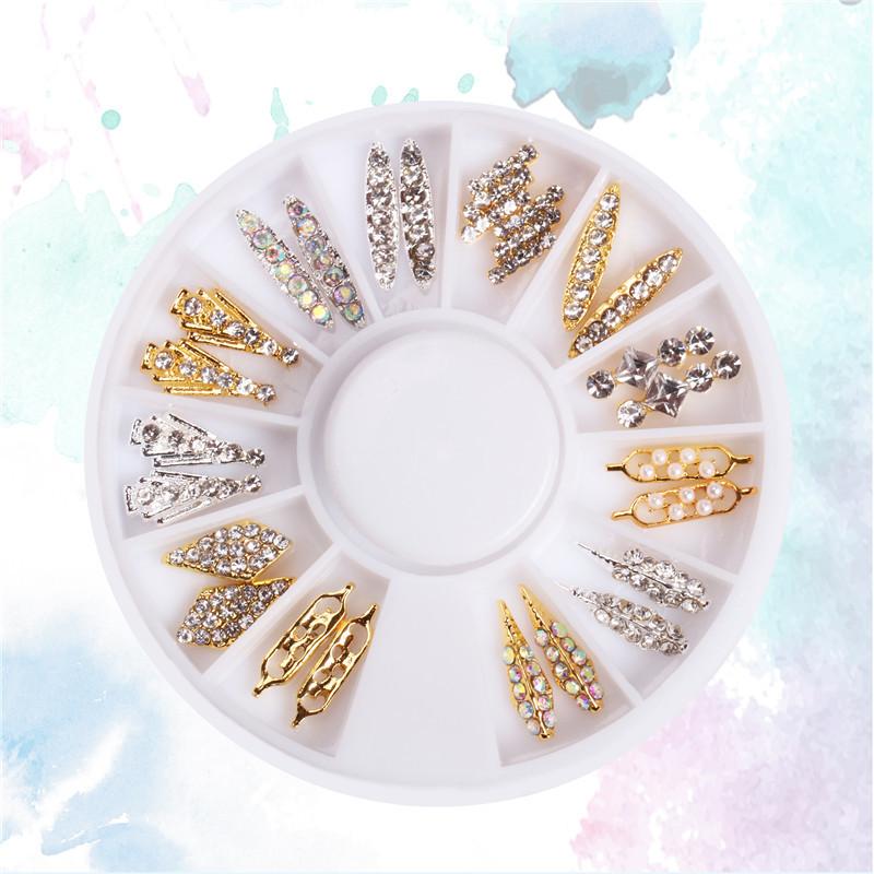 24 шт./колесо, полоска с плоской задней частью, украшения для ногтей, украшение для ногтей из сплава AB, стразы, жемчуг, украшение для ногтей