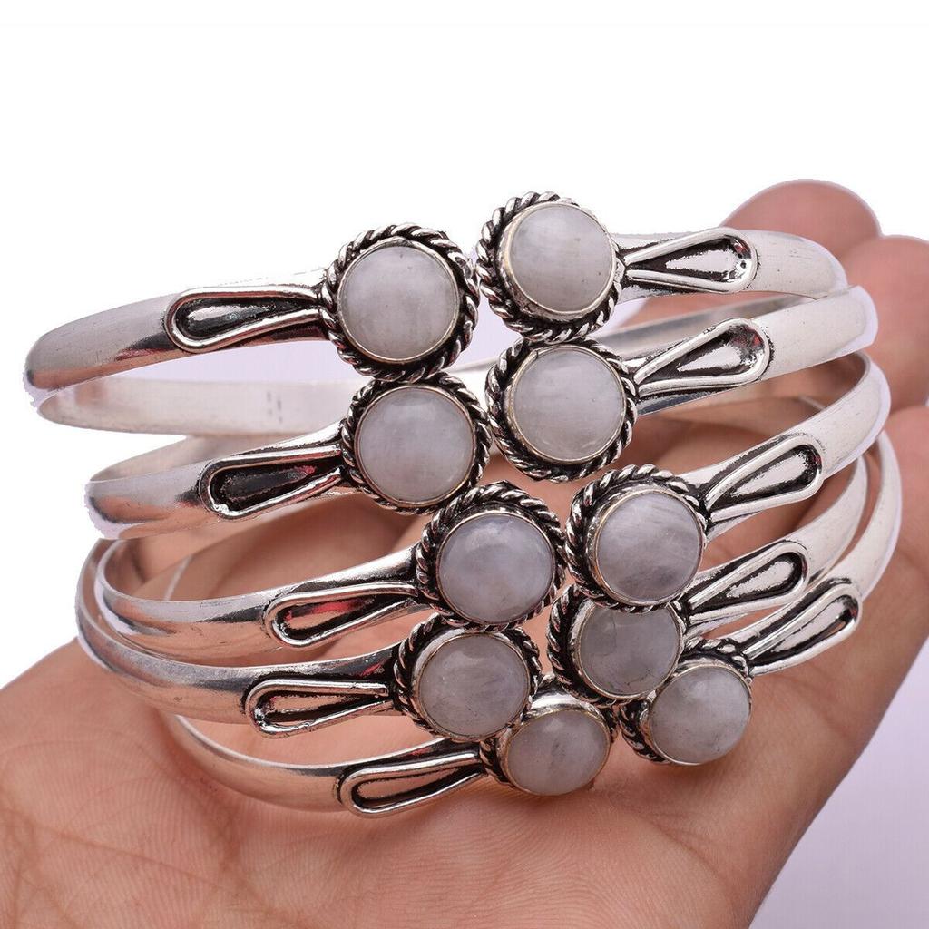 Лунный камень драгоценный камень 925 пробы с серебряным покрытием 5 шт. манжеты браслеты лот ZCB-B15 — купить товар онлайн с бесплатной доставкой по всему миру!