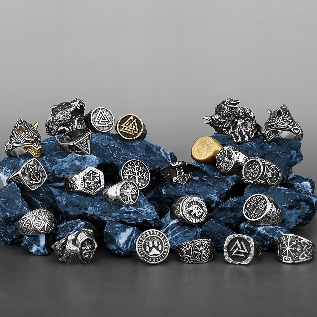 Северное кольцо викингов из нержавеющей стали, якорь, компас, Древо жизни, руна викингов, волк, мужское и женское кольцо, ювелирная фабрика